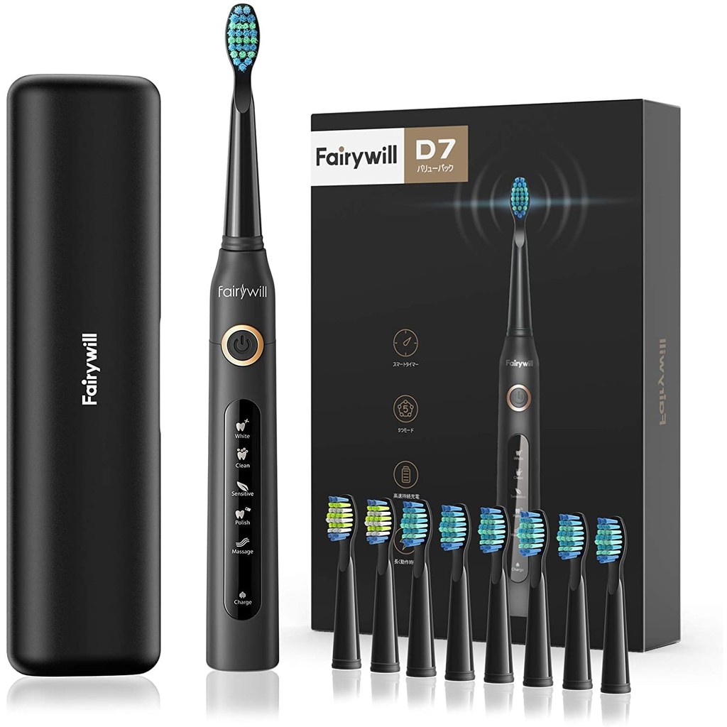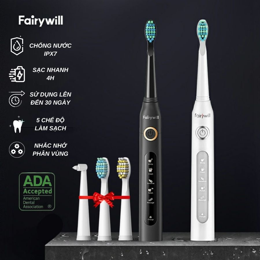 Bàn chải đánh răng điện Fairywill E10 và dụng cụ cạo lưỡi với 8 đầu bàn chải tiện lợi dễ sử dụng