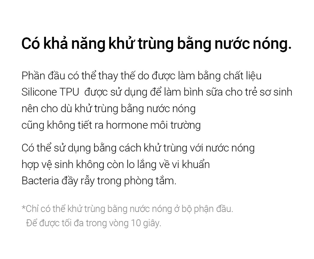 có thể khử trùng bằng nước nóng để sử dụng một cách sạch sẽ hơn.